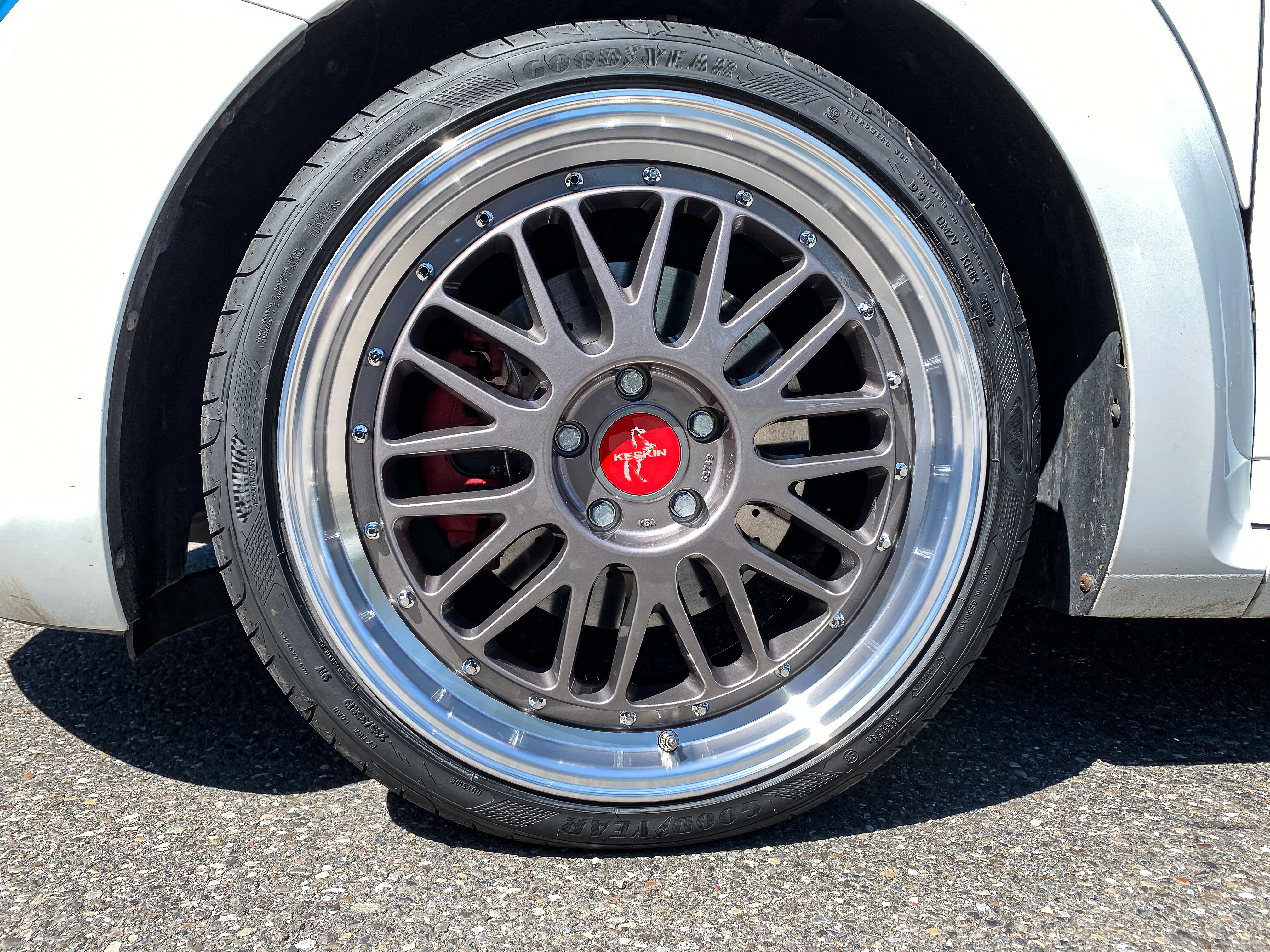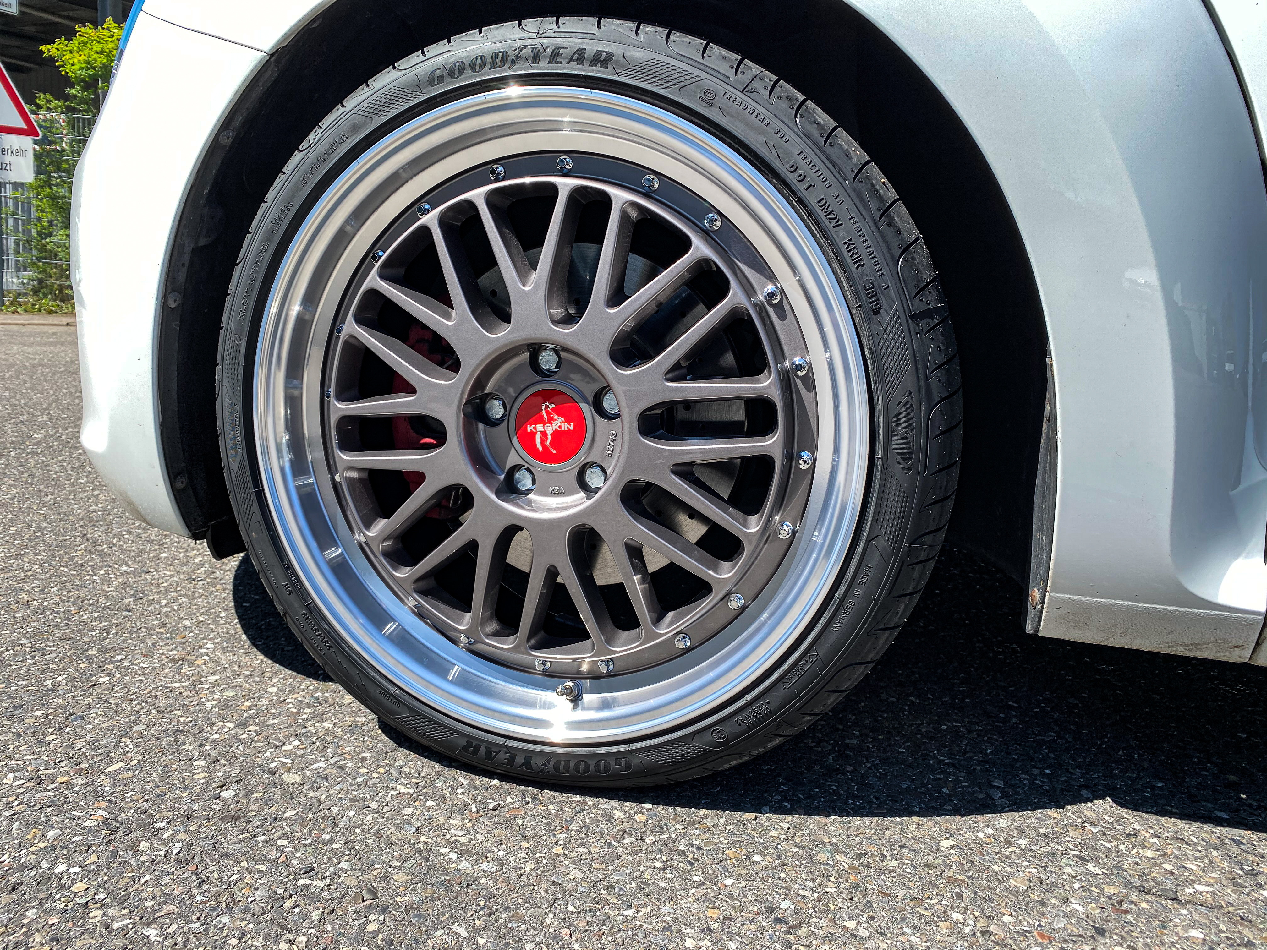 • 4 neueAlufelgen + 4 Keskin Nabendeckel + wenn benötigt (4 Zentrierringe 66,6-57,1) + wenn benötigt Kegelschrauben in Silber + ABE/Gutachten