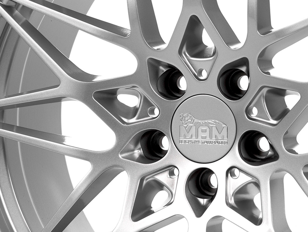 • 4 neueAlufelgen + 4 MAM Nabendeckel + wenn benötigt 20 Radschrauben Silber + ABE/ Gutachten